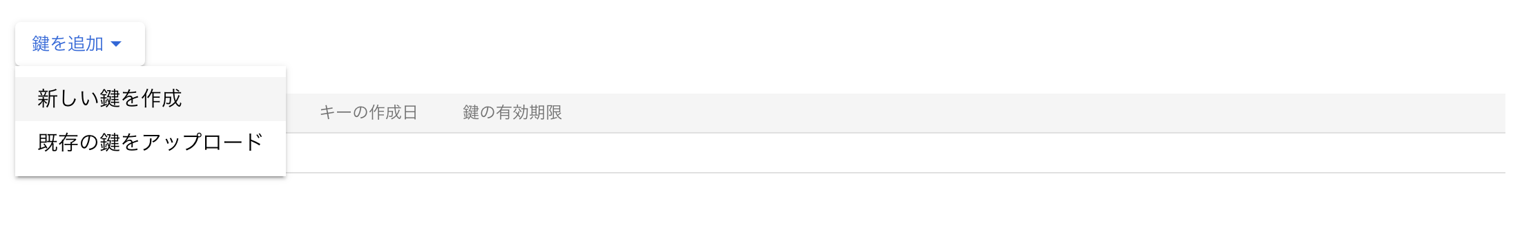 鍵の追加をクリックし、詳細メニューの鍵の追加をクリックします。