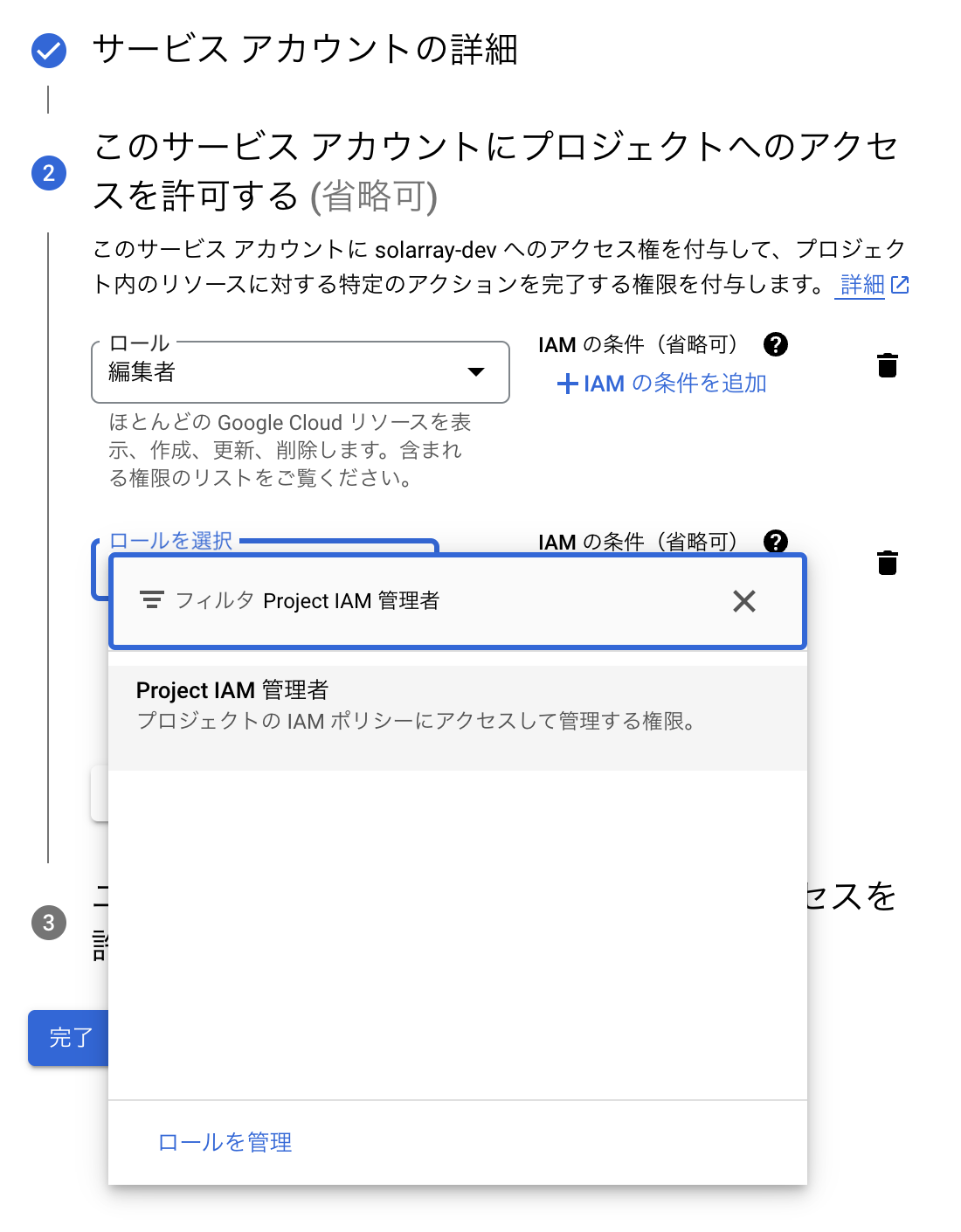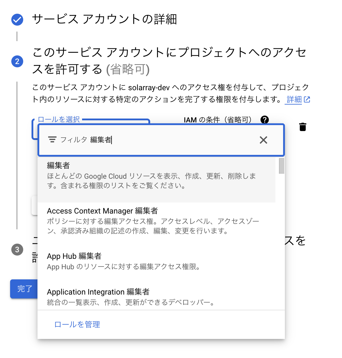 2.サービスアカウントへの権限の付与