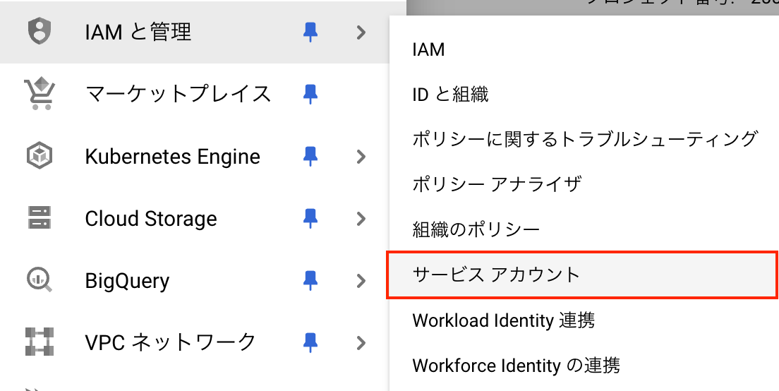 GCPサービスアカウントの作成方法