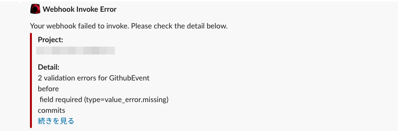 WebhookトリガーによるAssemblylineの起動が失敗した場合に、以下のようなエラー通知が投稿されます。 (Project設定画面でSlack通知が設定されている場合のみ)