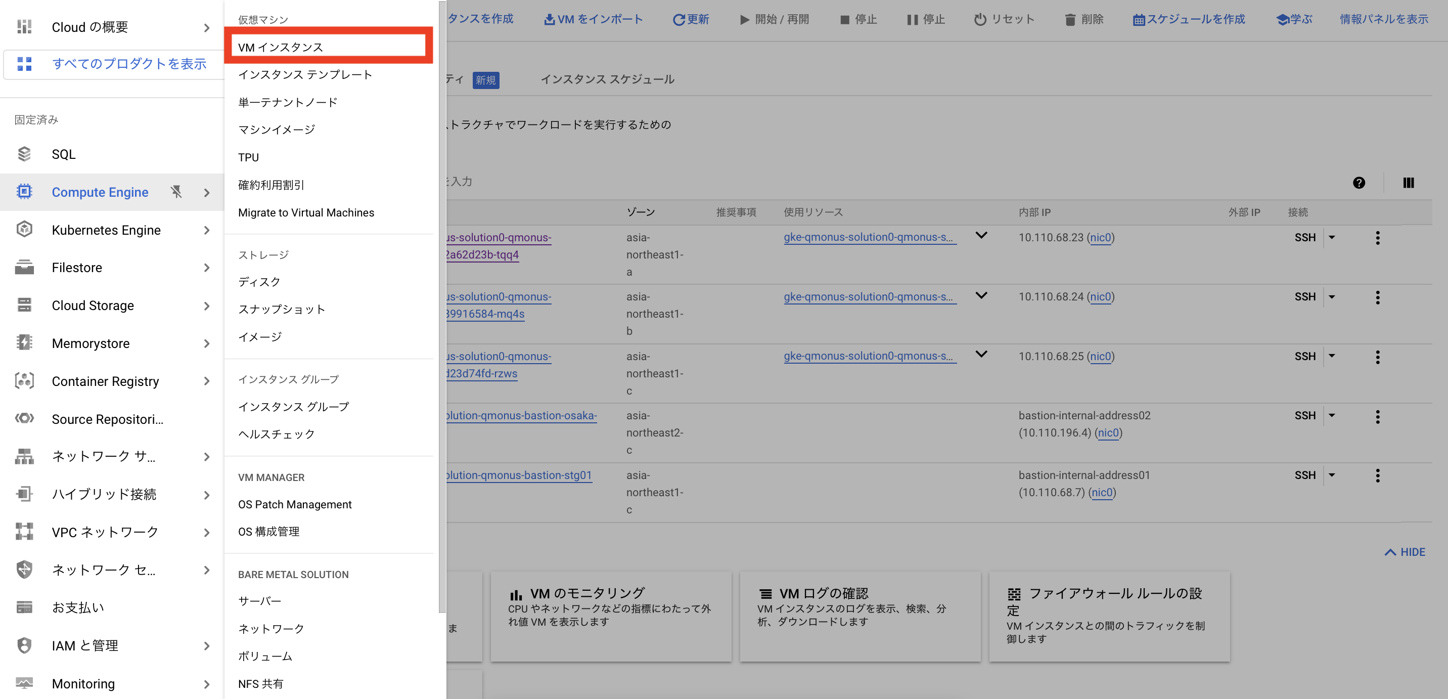 - GCPコンソール > Compute Engine > VMインスタンスを選択します。
