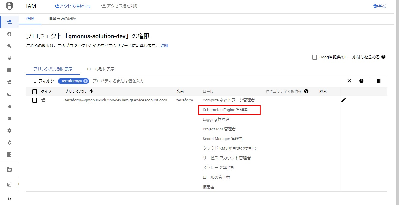 - GKEリソースを作成するTerraformはVS v3マイグレーションユーザは今回初めて作成します。