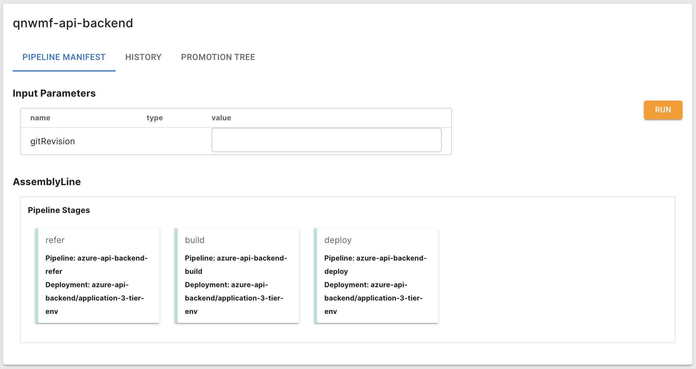 Qmonus Value Stream からリソースをデプロイできる準備が整ったので、azure-api-backend の AssemblyLine を確認して、登録された CI/CD パイプラインの内容を確認してみましょう。