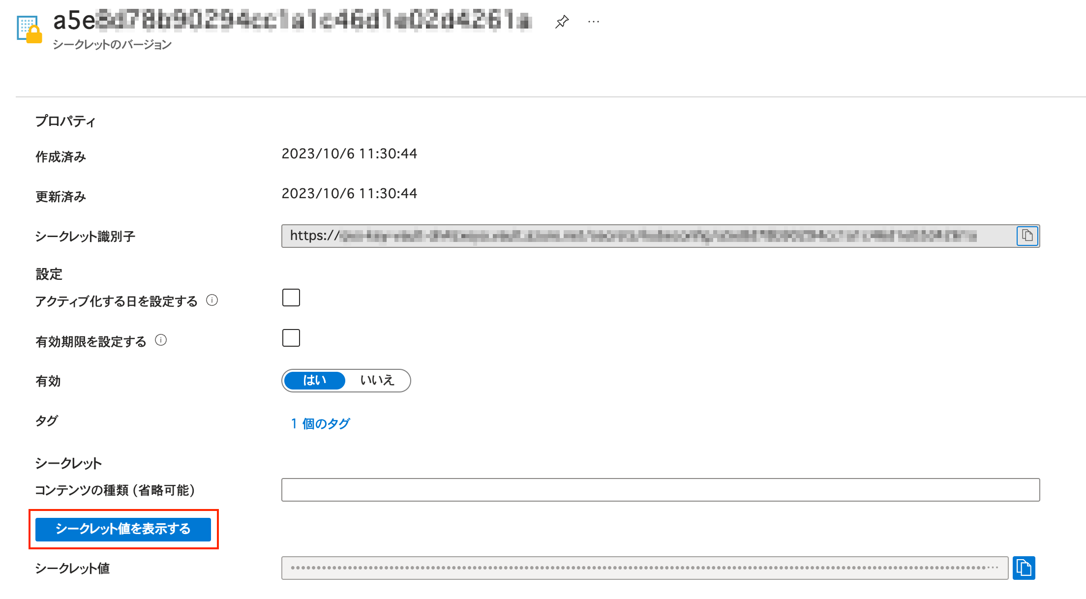 6. シークレット情報の画面に移動したら、画面下部の シークレット値を表示する ボタンをクリックします。