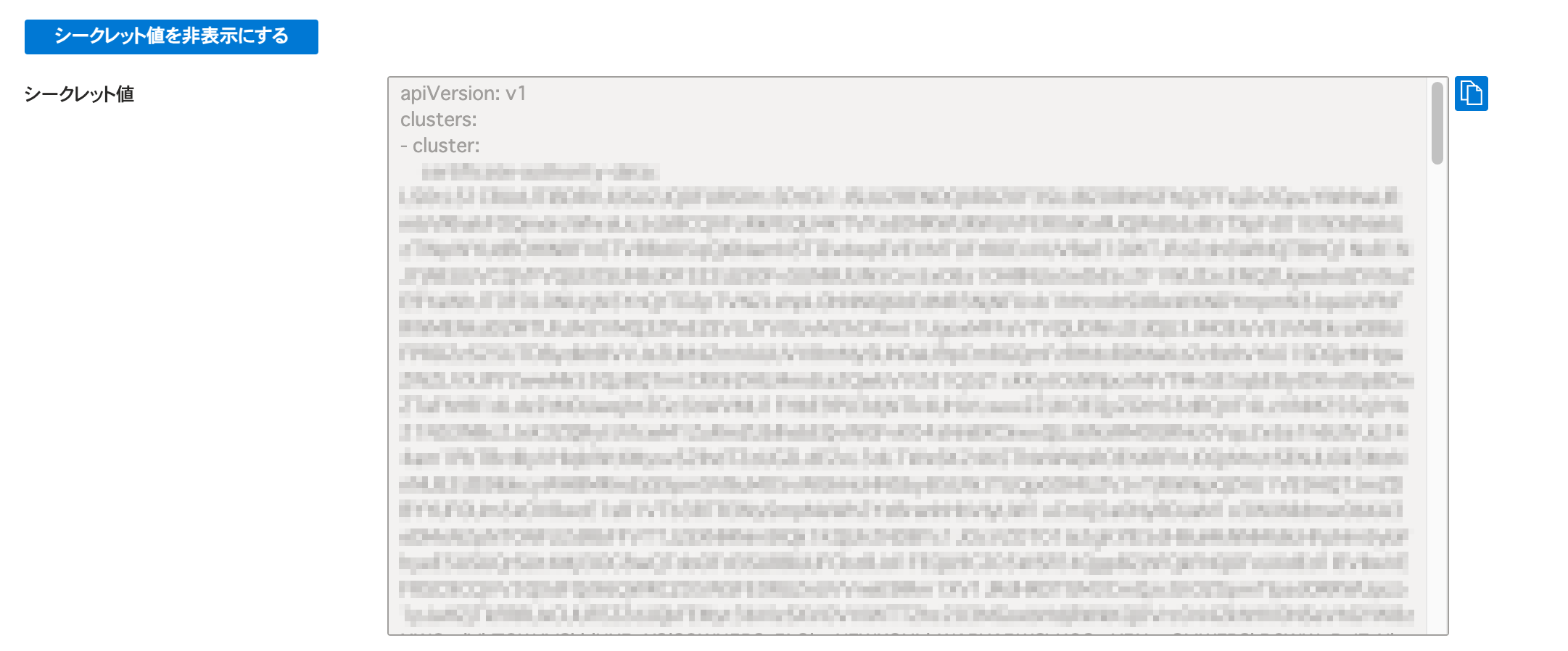 7. kubeconfigが表示されるので、内容をコピーしておきます。