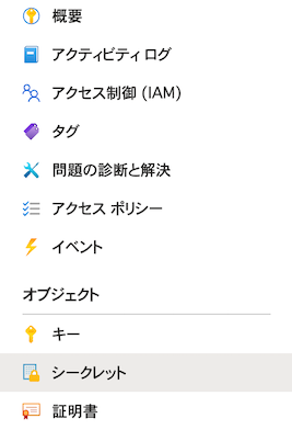 3. 左メニュー一覧からシークレットを選択します。