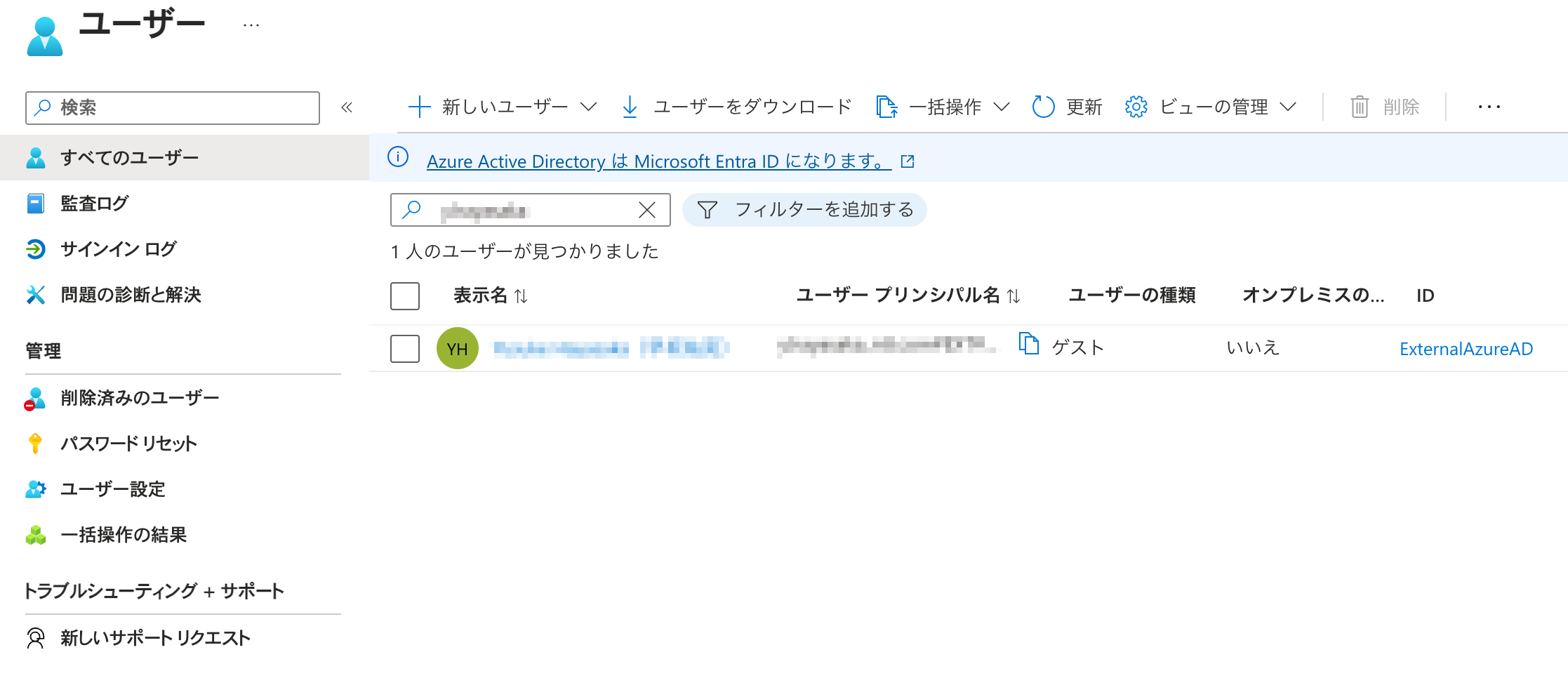 1. Azure portalにログインし、検索欄に Microsoft Entra ID を検索して選択します。
