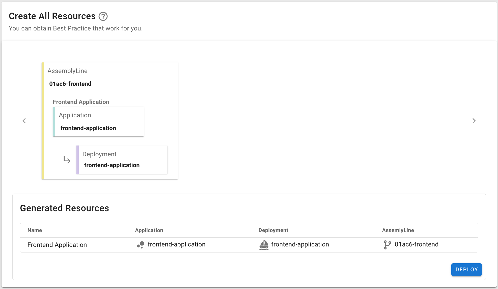 次の画面に遷移したら、今回登録した Application, Deployment, AssemblyLine の内容を確認します。