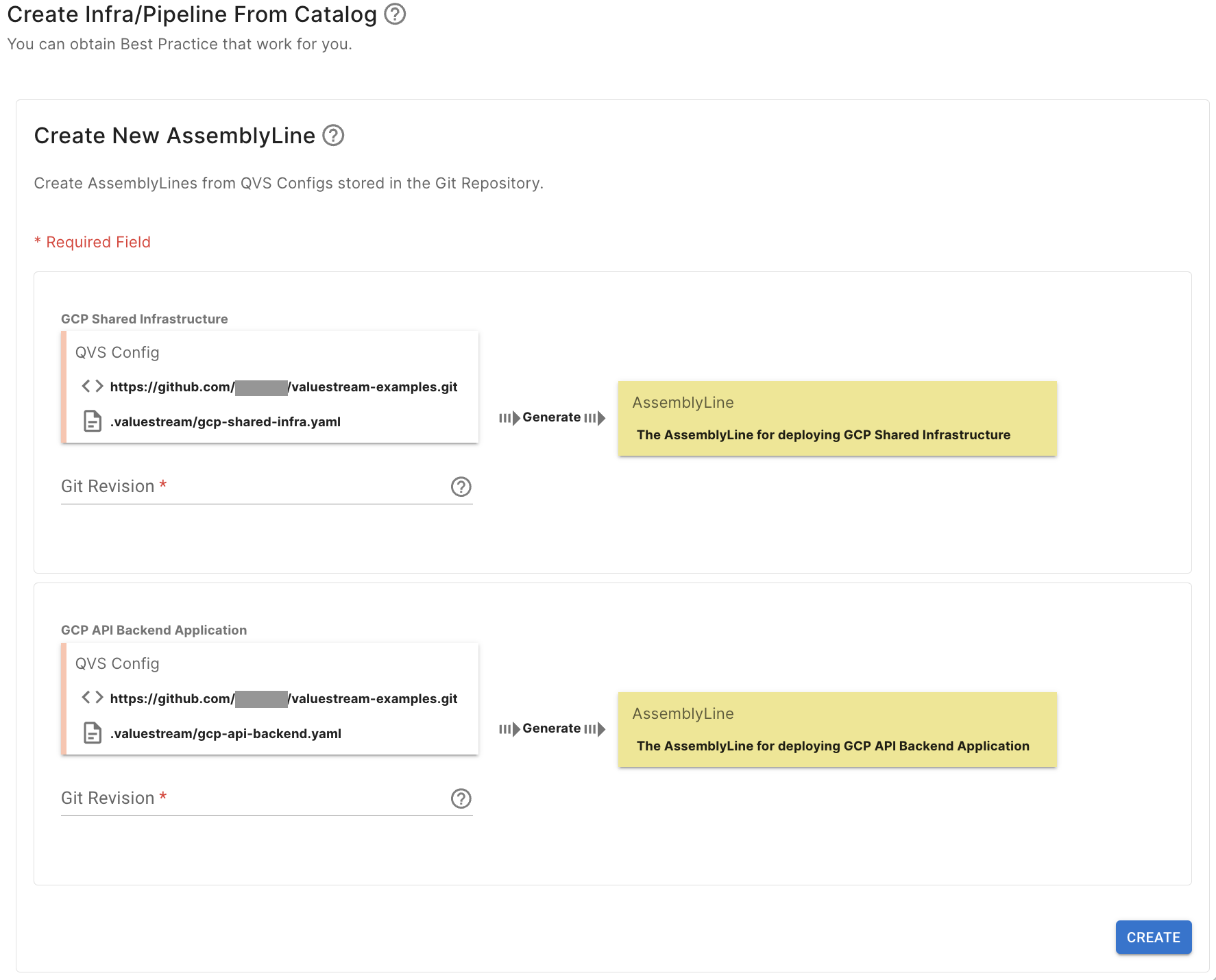 今回は手順3で、gcp-shared-infra と gcp-api-backend の二つの Application と、それぞれに紐づく Deployment を登録しました。 さらに、手順4-1で、それぞれの Application に紐づくリポジトリから QVS Config を読み込み、Task, Pipeline,AssemblyLine を登録しました。