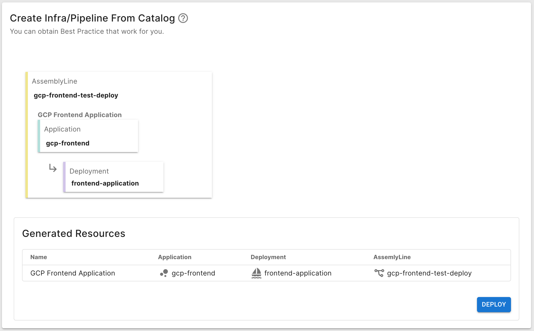 今回は手順2で、gcp-frontend の Application と、それに紐づく Deployment を登録しました。 さらに、手順3-1で、Application に紐づくリポジトリから QVS Config を読み込み、Task, Pipeline, AssemblyLine を登録しました。