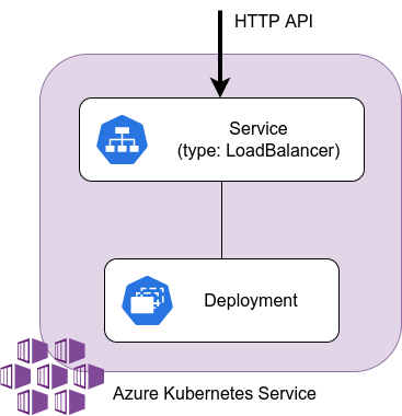 本チュートリアルでデプロイするアプリケーションは、以下の図に示すように、LoadBalancer と Nginx で構成されるシンプルな HTTP API サーバです。