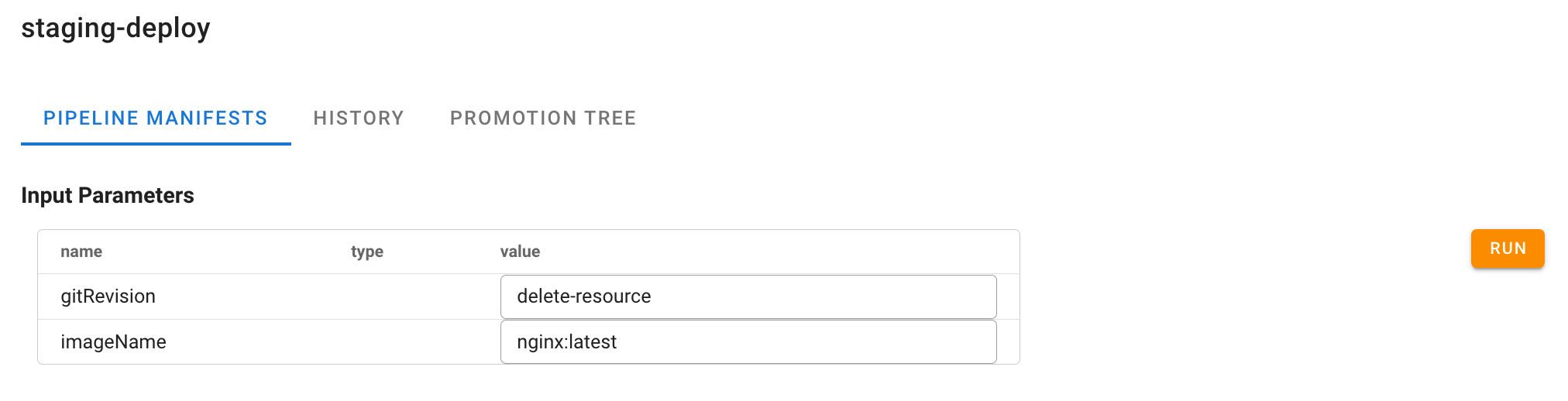 RUNボタンを押下してAssembly Lineを実行します。- gitRevision: